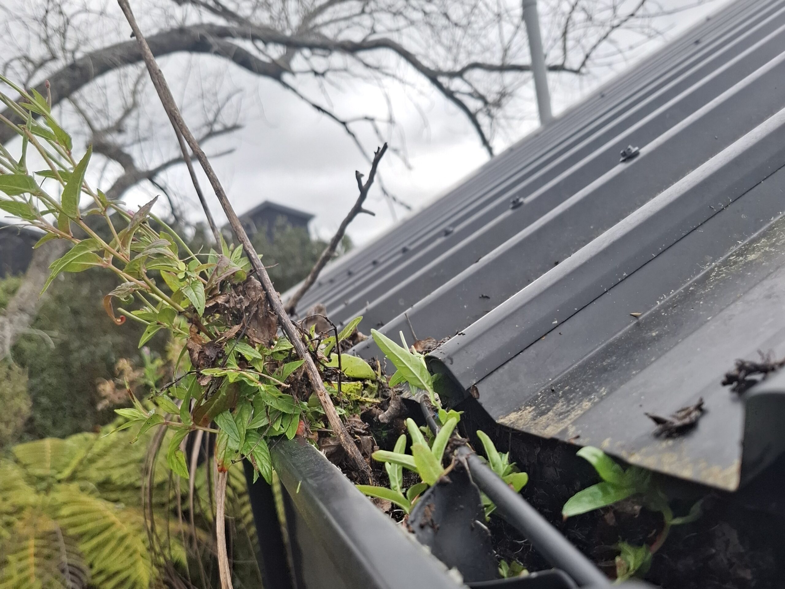 Clearing gutters of leaves and debris to protect your home from leaks, blockages, and water damage.